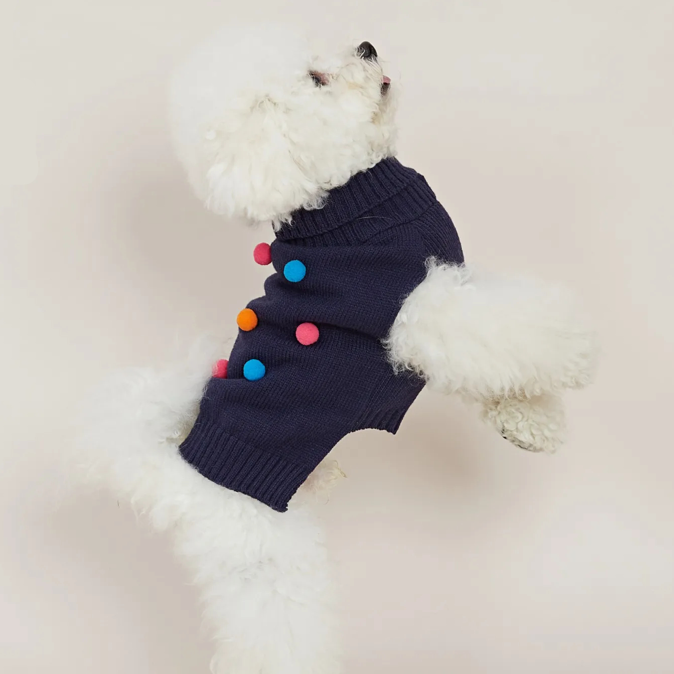 Votre chien est un animal d'intérieur, qui apprécie son confort ? Optez pour ce joli pull d'hiver qui sera idéal pour le garder bien au chaud sans entraver ses mouvements. Ses adorables pompons multicolores apporteront une touche de joie et d'originalité à l'ensemble, amusant les passants et les commerçants présents sur votre chemin !