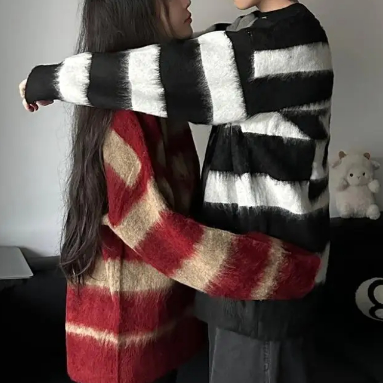 Ce pull couple au col rond et à la coupe ample est le parfait vêtement pour les jours de froid où vous souhaitez rester confortable tout en étant stylé. Fabriqué avec des fibres douces et chaudes, ce pull est idéal pour les soirées cocooning ou les sorties en amoureux.
