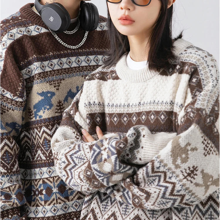 Que ce soit pour une balade en forêt, une soirée cocooning à la maison ou une sortie en ville, ce pull couple en jacquard beige et marron saura vous accompagner avec style et dans le confort. Vous pouvez le porter sous un blouson ou un manteau pour être chaud toute la journée.