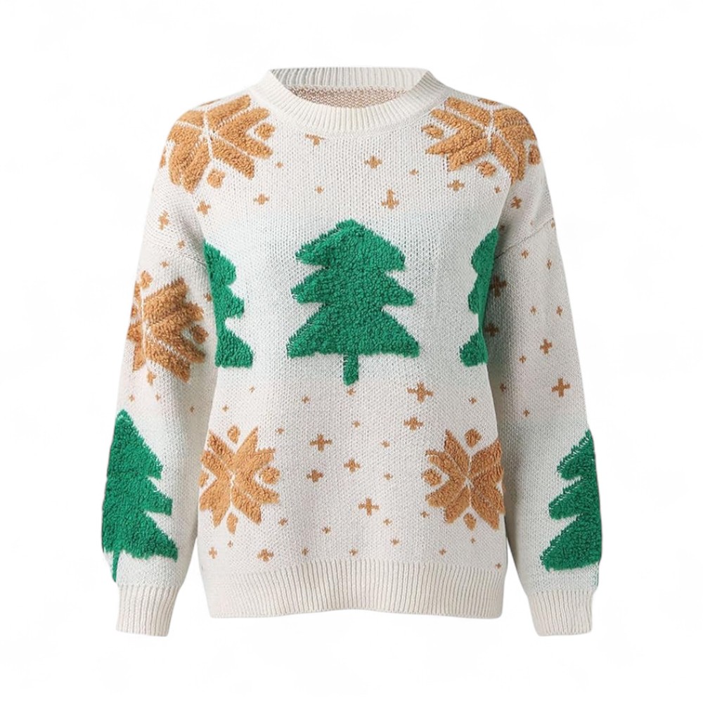 Pull de Noël femme motif sapin en tricot moelleux