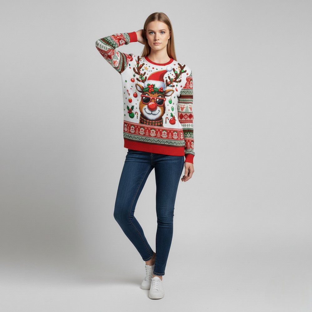 Conçu pour les concours du pull le plus moche, les soirées à thème et les cadeaux humoristiques, ce modèle fait mouche à chaque fois. Il inspire les photos, renforce la convivialité et devient le déclencheur de souvenirs partagés.