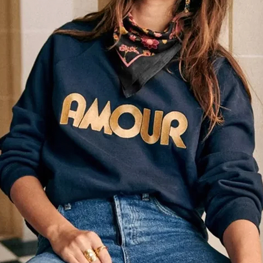 Pour un pull tendance et très confortable, on opte pour notre pull amour pour femme lettres arrondies. Un sweat col rond, écrit “amour” avec des lettres à l’esprit vintage, disponible en différentes couleurs pour que chacune puisse trouver celle qui lui convient.