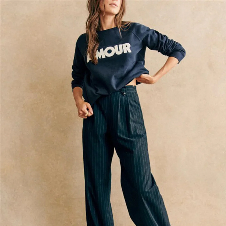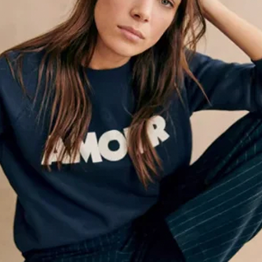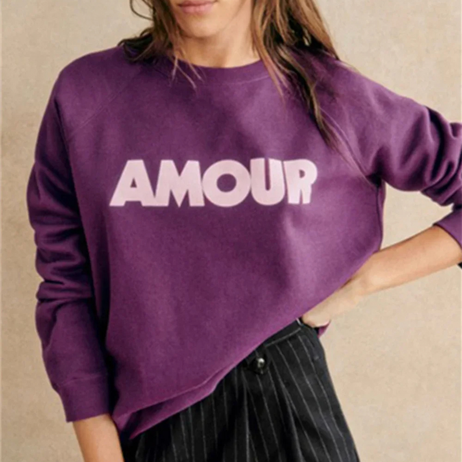 Notre pull amour pour femme sweat col rond est disponible en deux couleurs, bleu marine et violet pour ajouter une touche dynamique à votre garde-robe. Son design original et tendance met en avant le mot "amour" écrit en lettres stylisées sur le devant du pull, ajoutant une touche romantique et féminine à votre tenue.