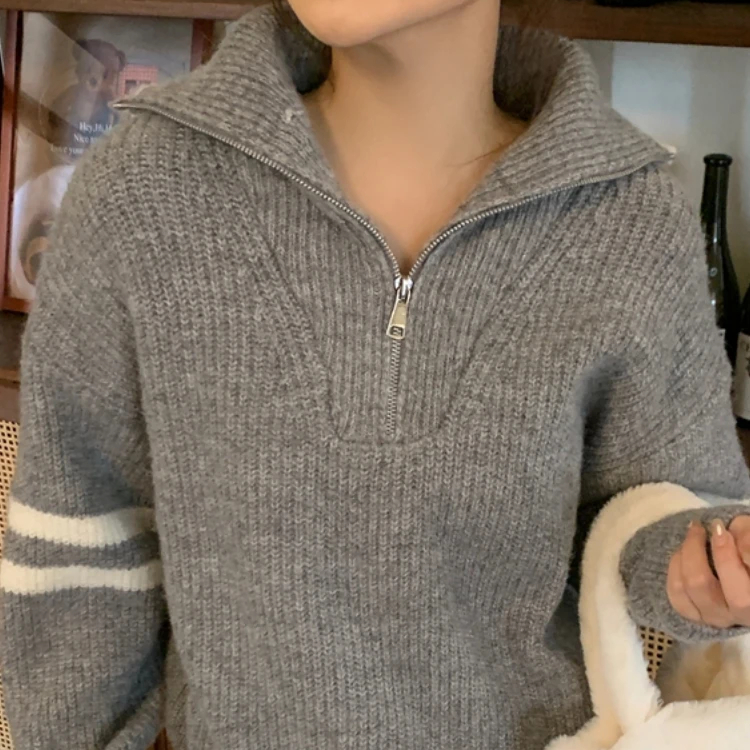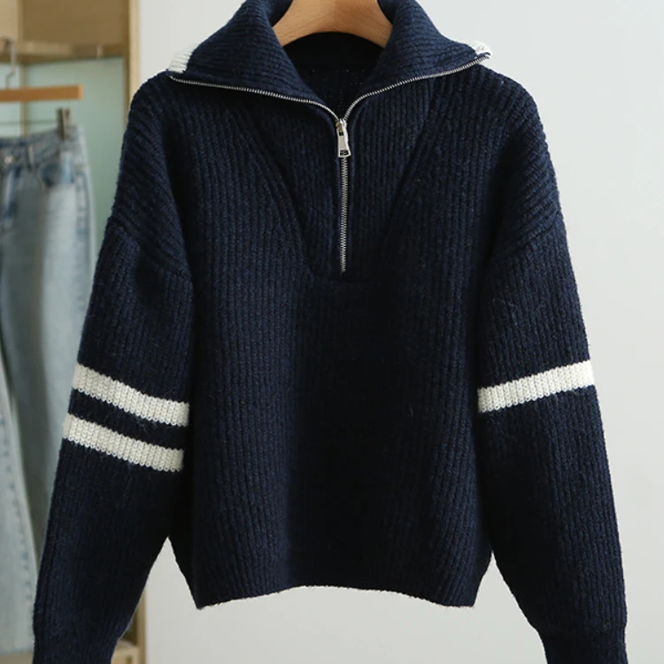 Pull camionneur femme manches et col rayés
