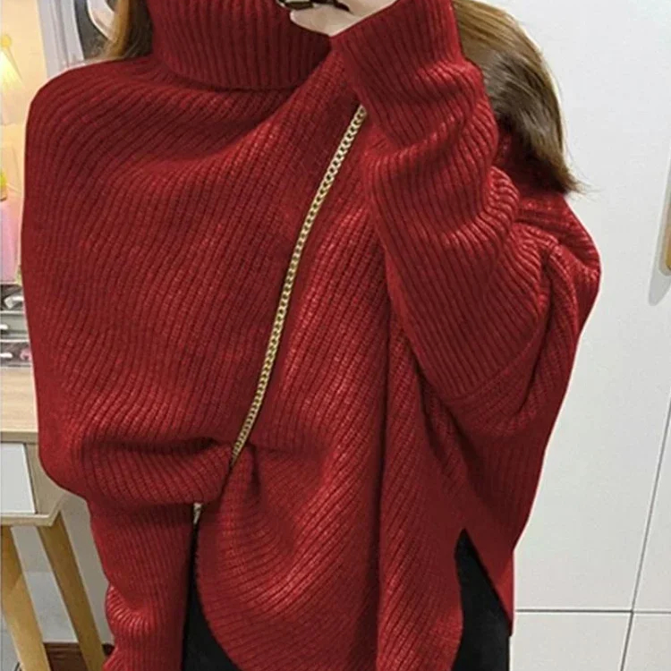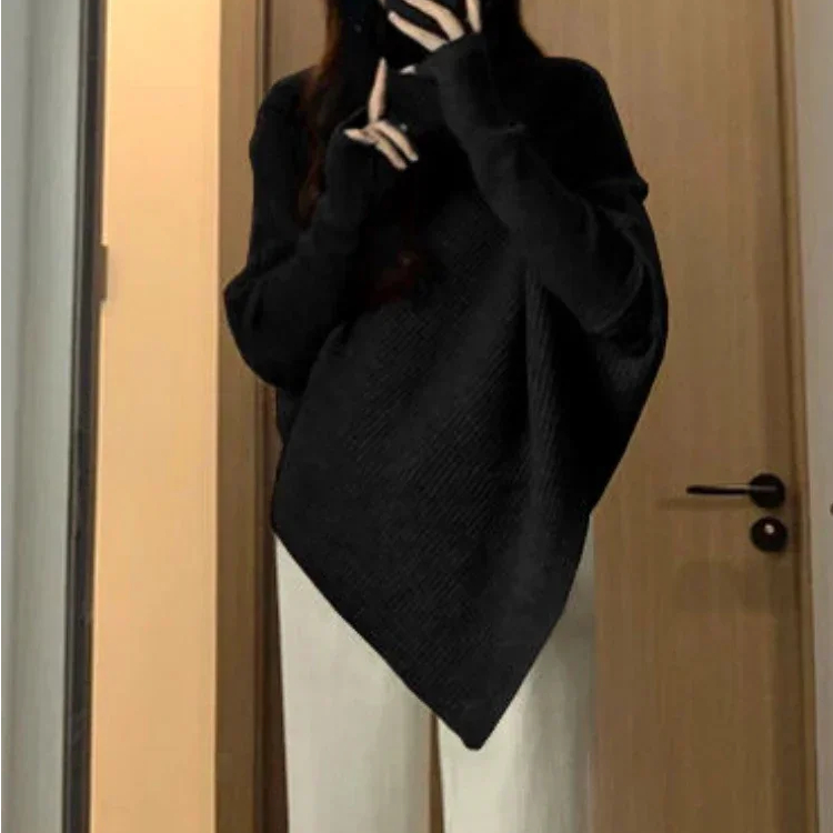 Pull chauve-souris à col roulé pour femme asymétrique