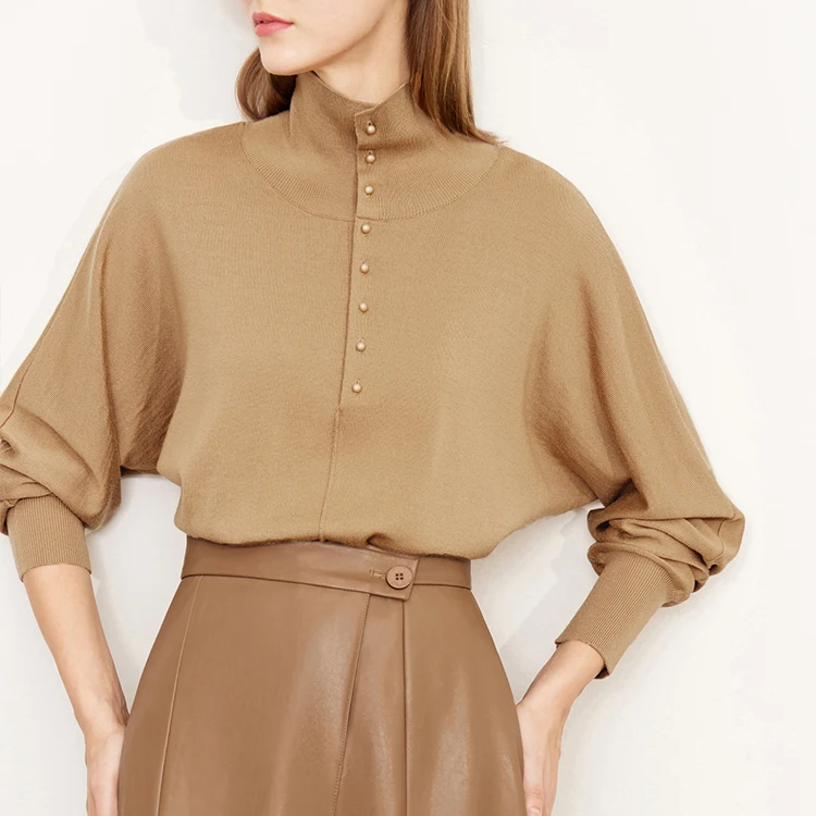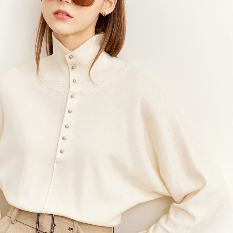 Pull chauve-souris en laine pour femme, boutonnière à l’avant ou à l’arrière