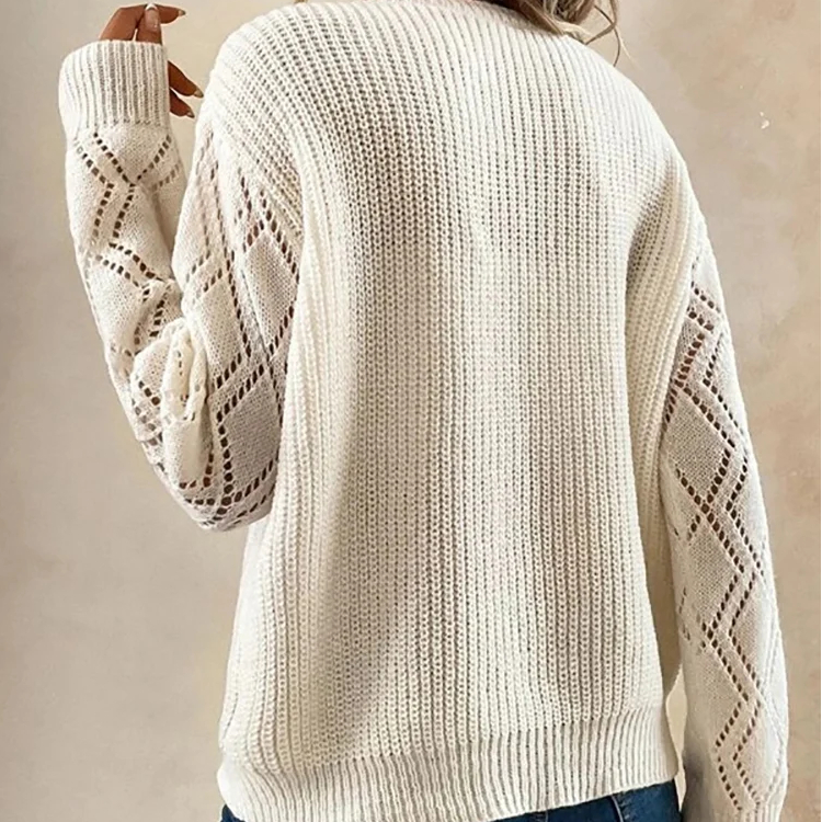 Pull col V femme manches ajourées