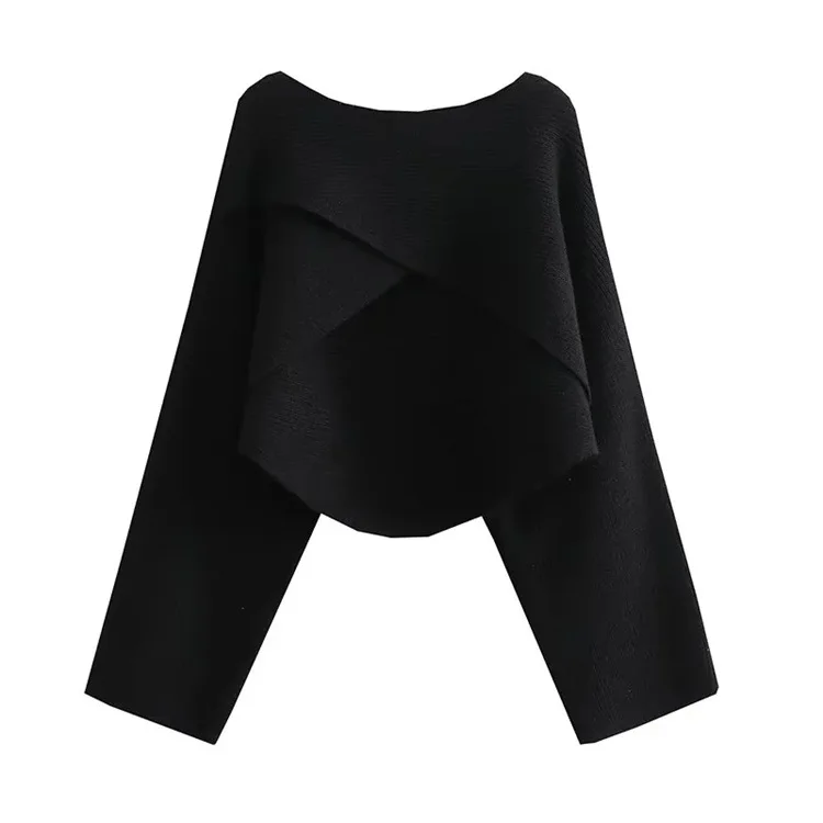Pull court femme croisé manches larges
