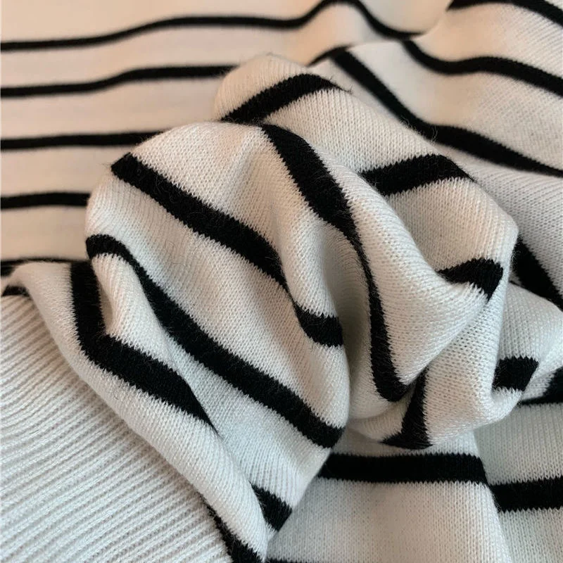 Les rayures contrastantes ajoutent une dimension visuelle captivante, tandis que le col rond dégage une élégance simple à votre allure. Les manches longues couvrent vos bras lors des journées fraîches, tandis que les revers des manches ajoutent une touche de sophistication subtile et original. Ne manquez pas notre joli pull !