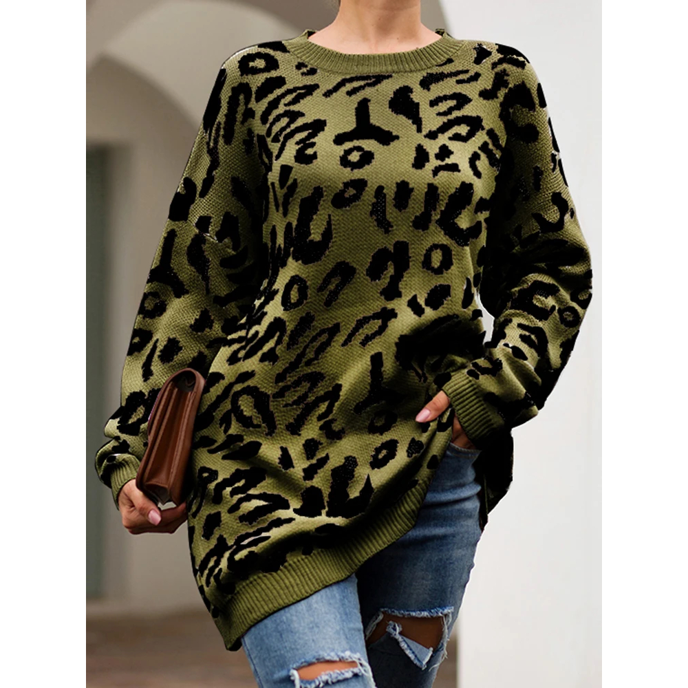Pull léopard femme long