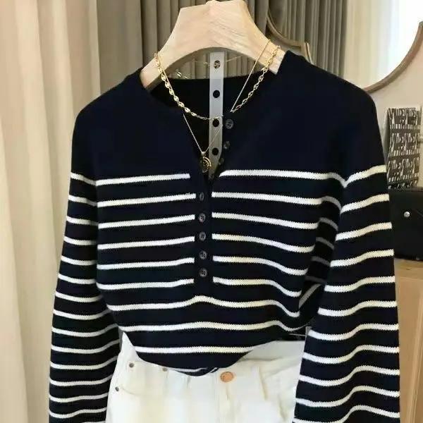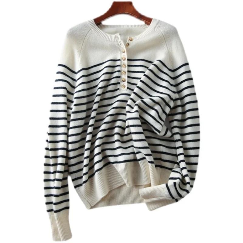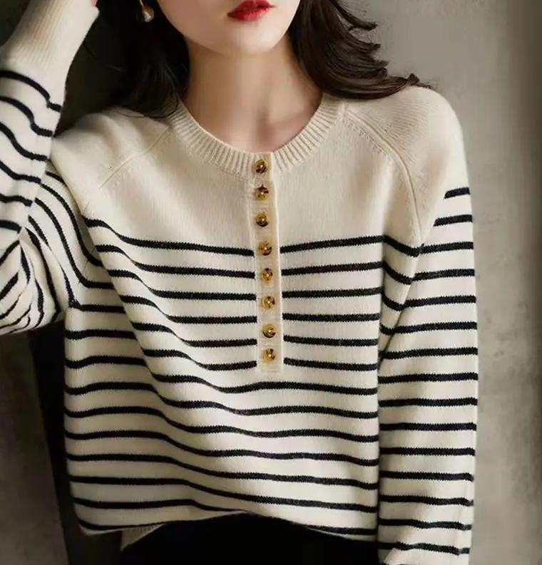 Pull marinière en laine col rond à boutons pour femme