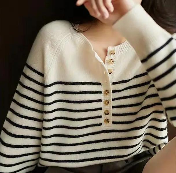 Découvrez notre pull en laine marinière col rond à boutons pour femme. Idéal à porter à la mi-saison, c’est un indispensable de votre dressing. Vous apprécierez le mettre avec un jean et des baskets ou une petite jupe et des sandales. Une fois adopté, vous ne pourrez plus le quitter.