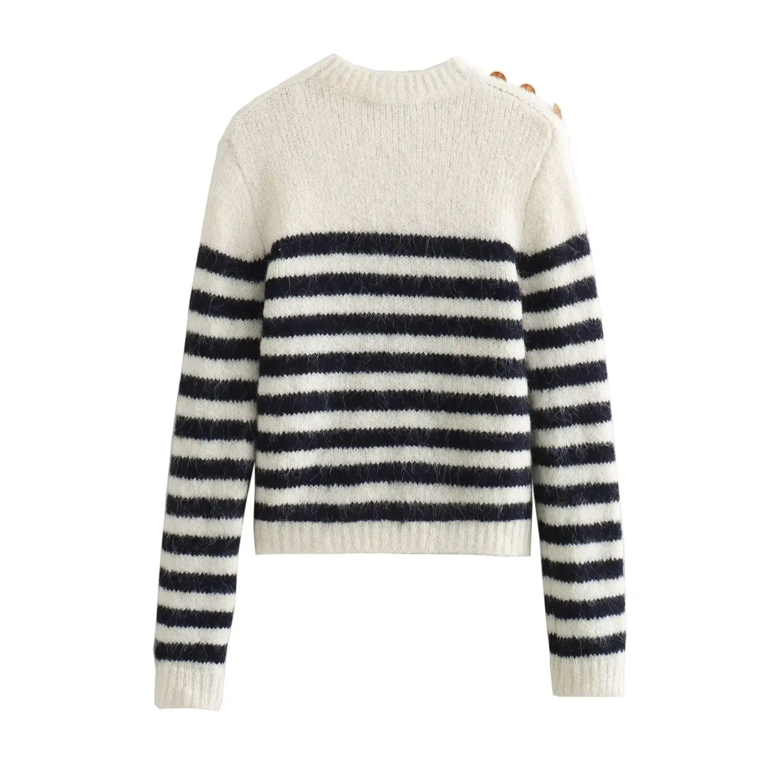 Pull marinière en tricot blanc boutons dorés pour femme