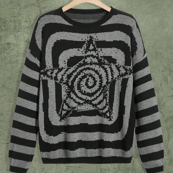 Les rayures en tourbillon, disponible en gris ou vert et noir, ajoutent une touche de dynamisme et de fantaisie à votre tenue. L'étoile au centre du pull apporte une note de magie et de féérie, évoquant les nuits étoilées et les rêves les plus fous. Son motif rétro rappelle les tendances des années passées, pour un look vintage assumé et original.