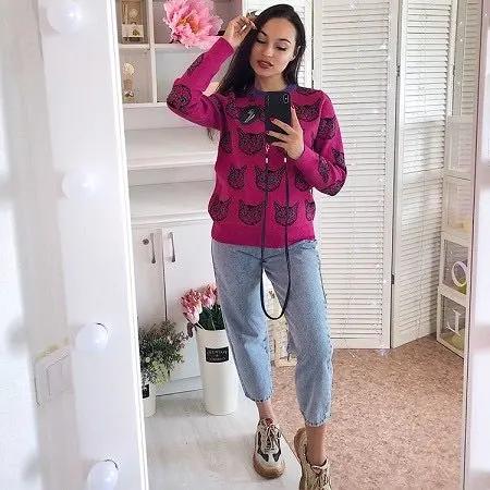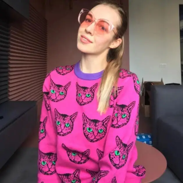 Pull moche rose tête de chat pour femme