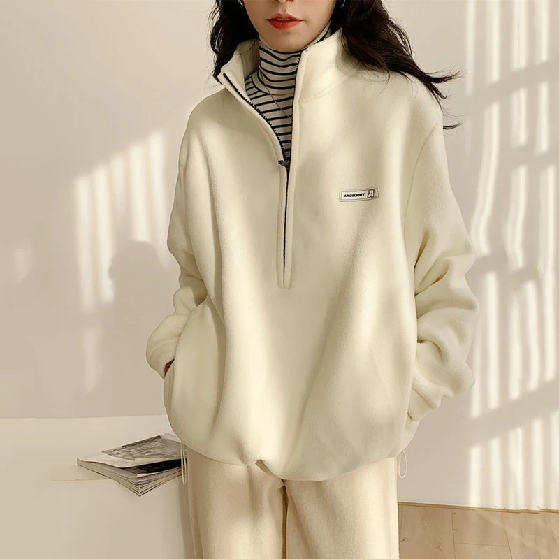 Notre pull polaire femme ample est un produit de qualité chaud, doux à porter, élégant et stylé pour plaire à toutes. Il est tendance et polyvalent, convient à toutes les morphologies et se combine facilement avec plusieurs styles de vêtements, qu’ils soient habillés ou confortables. Il existe en trois couleurs et cinq tailles.
