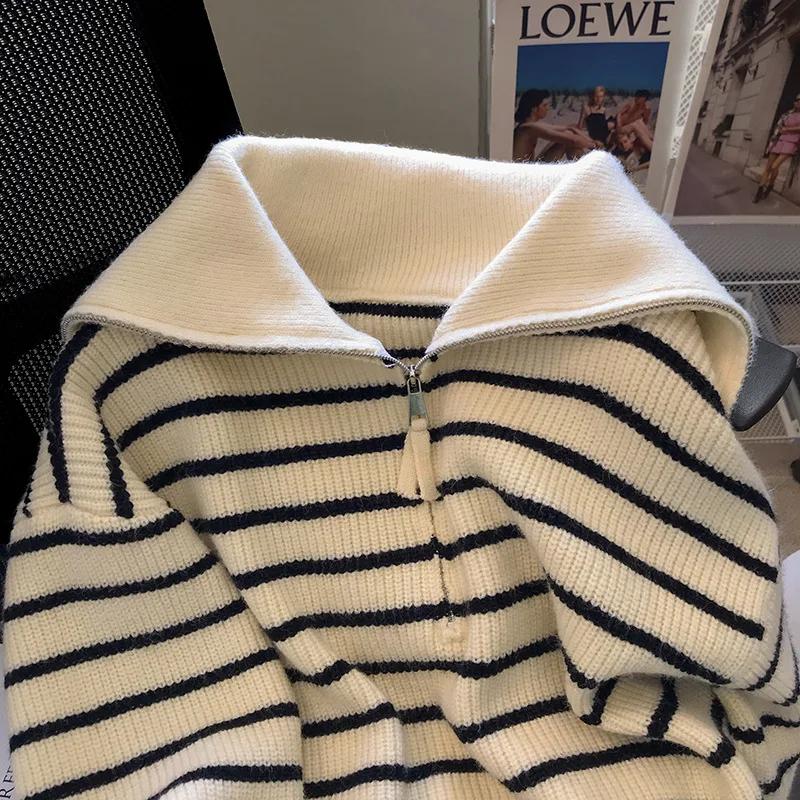Pull marin rayé col zippé pour femme
