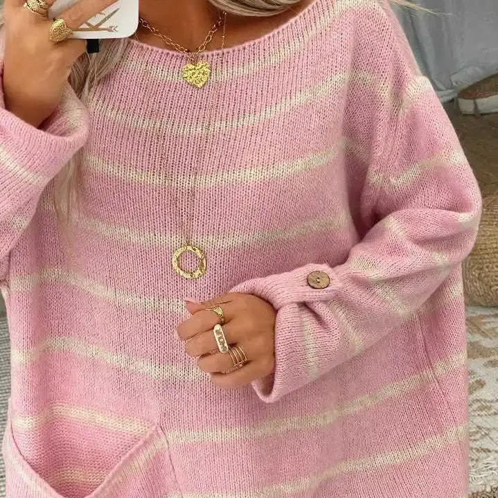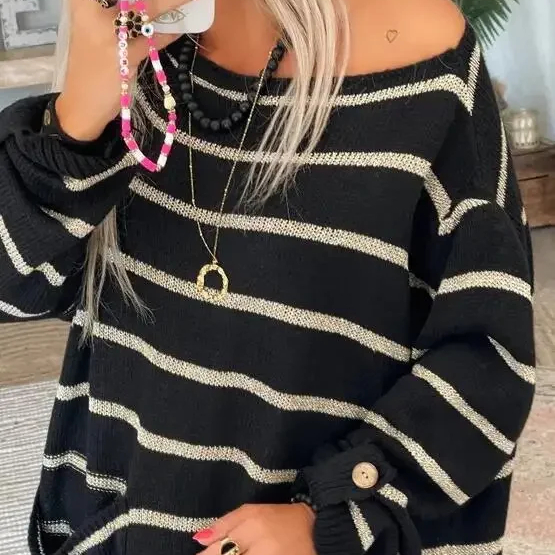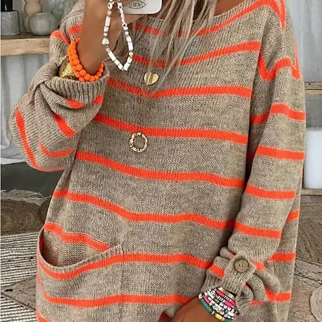 Les rayures audacieuses et vives apportent une explosion de couleur à votre tenue, tandis que le col bateau flatteur dévoile subtilement vos épaules pour une allure féminine et raffinée. Fabriqué à partir de matériaux de haute qualité, notre pull offre un confort incomparable et une douceur luxueuse à chaque port.