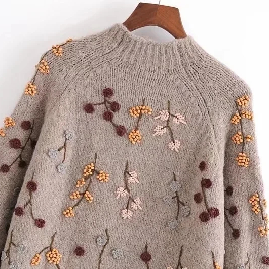 Ce pull vintage femme perles est un pull conçu pour l'hiver avec une laine synthétique de qualité qui ne pique pas er ne se déforme pas. Il est chaud et se portera de préférence en automne et hiver. Son design rétro chic avec ses broderies de perles et de lainage est accentué par un col montant et de longues côtes au bas des manches