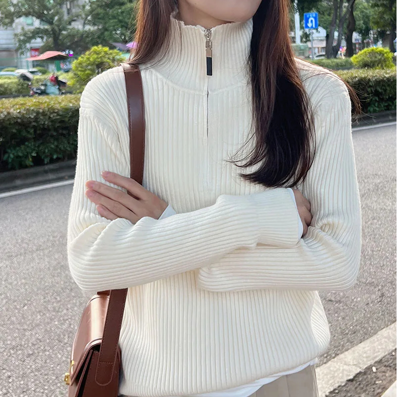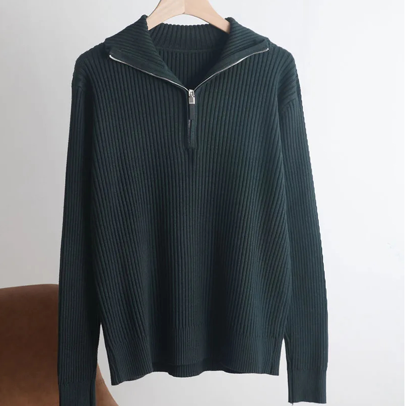 Pull zippé côtelé femme