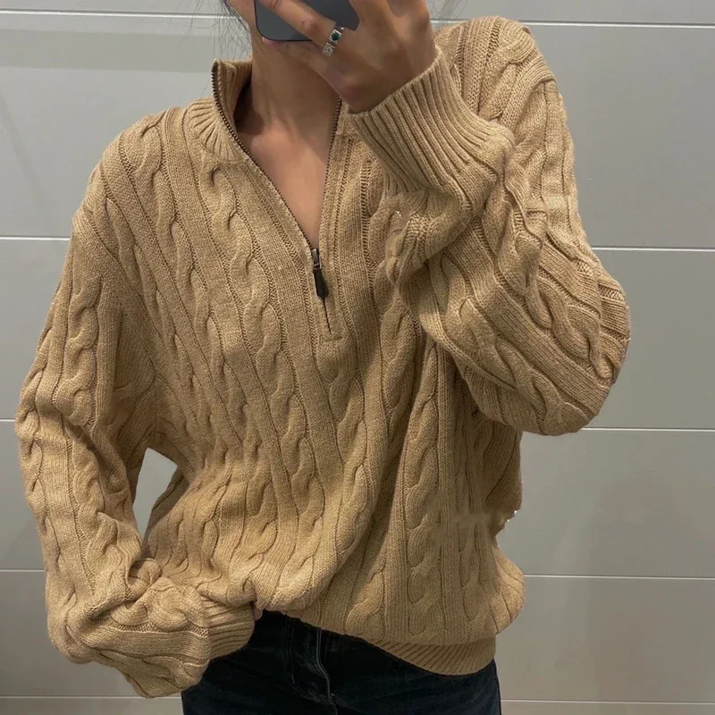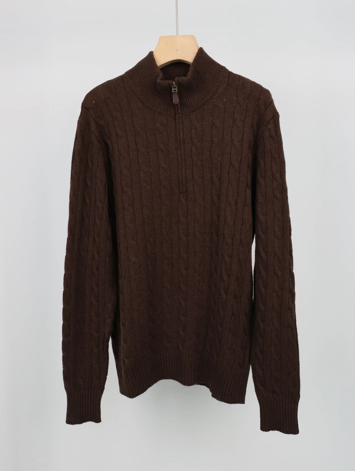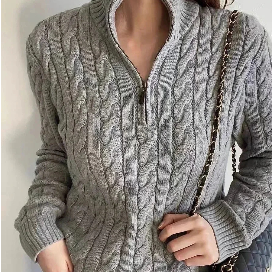 Ce pull zippé femme laine et cachemire est un produit de qualité, savant mélange de deux laines pour que ce pull soit d'une douceur incomparable et apporte beaucoup de chaleur. Il est doté d'un design décontracté et confortable fait de torsades devant et dos. Le zip de qualité vient fermer ce col droit en bords côtes doubles pour plus de chaleur.