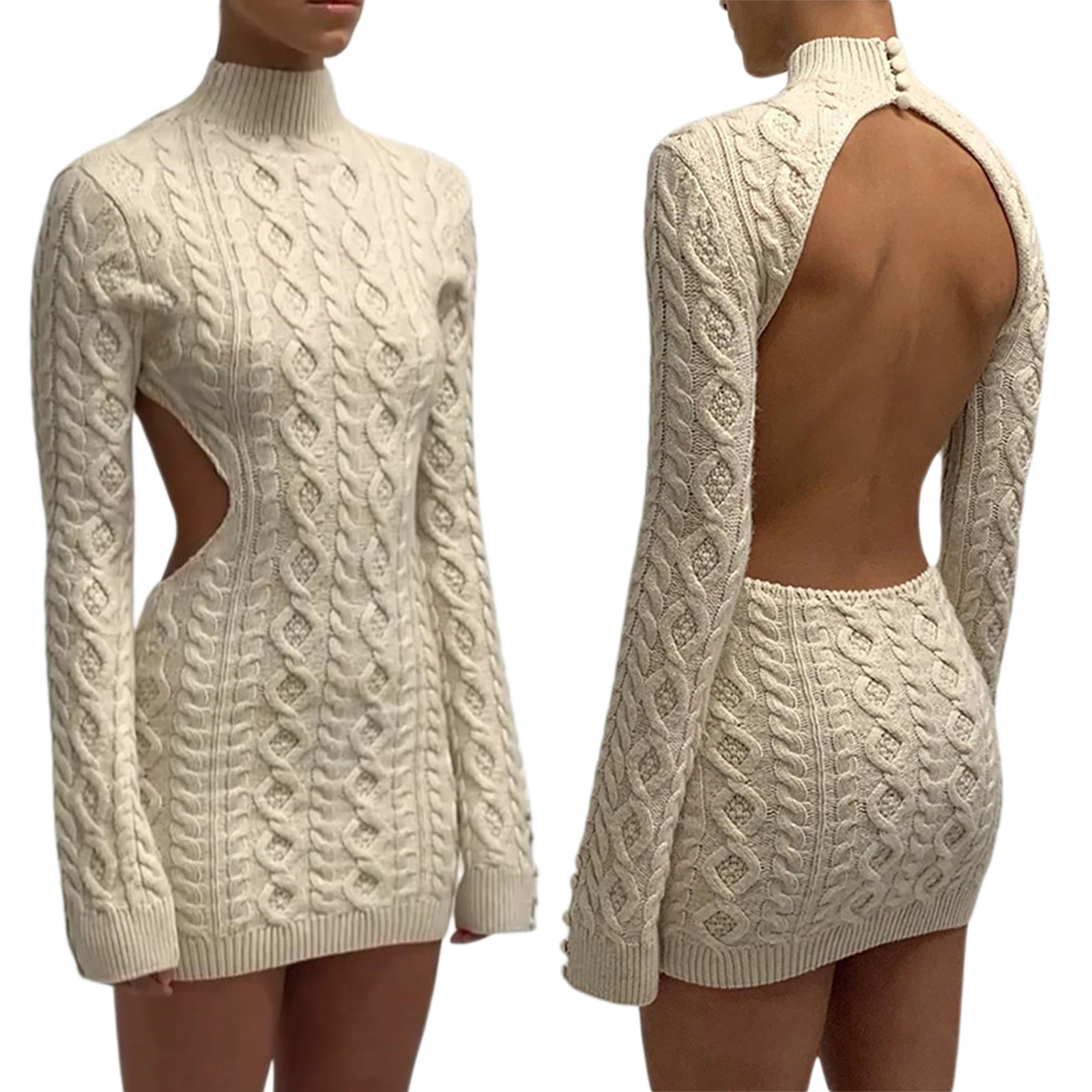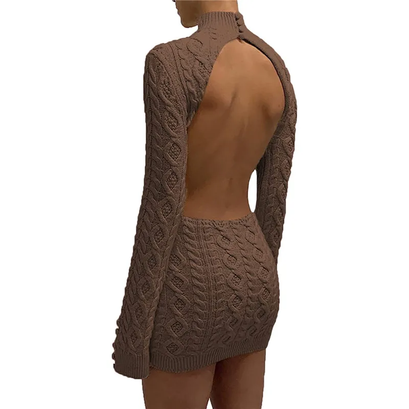 Conçu en mélange de coton et d'acrylique, notre robe pull dos nu est à la fois chaude, douce, respirante et très agréable à porter. Son col montant apporte une touche de sophistication à l'ensemble et sa coupe dos nu ajoute une note très sensuelle. Disponible en trois coloris, vous pourrez choisir la teinte qui vous plait le plus et qui s'accorde au mieux à votre garde robe.