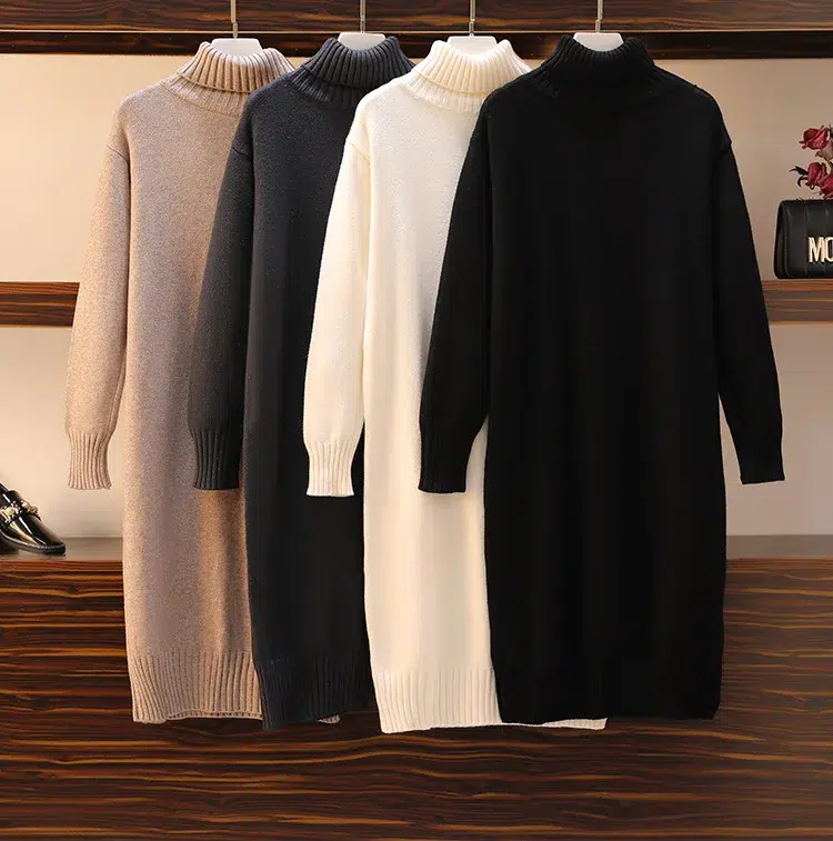 Notre robe pull longue à col roulé est disponible en quatre coloris sobres et élégants. Ils sont très faciles à associer pour créer une variété de tenues. Choisissez dès maintenant la teinte qui vous plait le plus et associez cette robe à de jolies bottines et un sac à main tendance. Si vous souhaitez opter pour un look plus décontracté, portez-la avec des baskets.