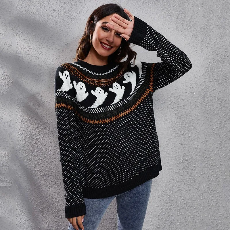 Pull d’Halloween motifs fantômes pour femme
