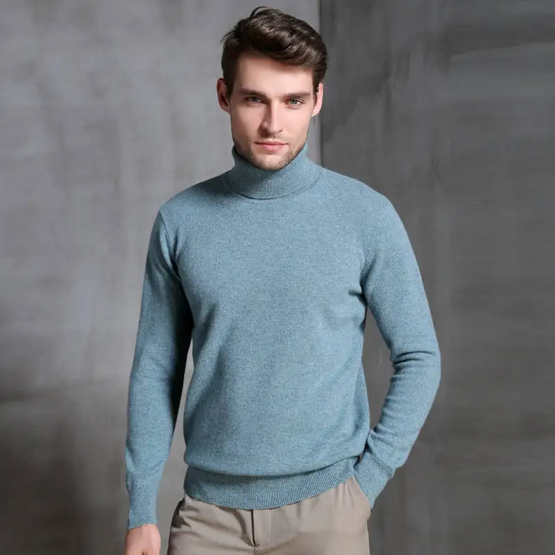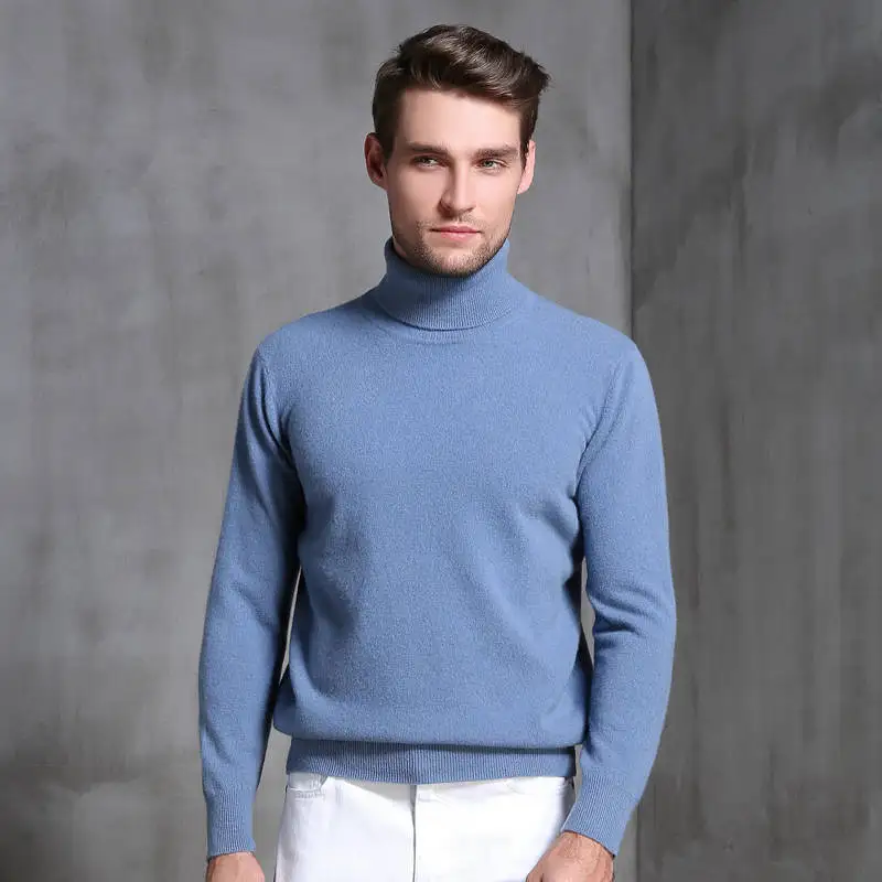 Pull chaud en laine et à col roulé pour homme