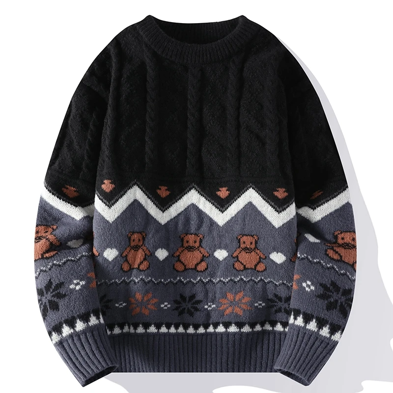 Pull norvégien jacquard motif ourson pour homme